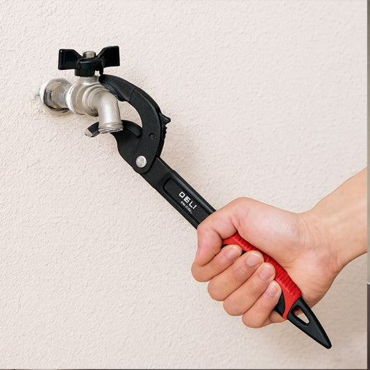 Notre Clé à molette Polyvalente se distingue par sa capacité à saisir aussi bien les écrous métalliques que les tuyaux en plastique, ce qui en fait un outil véritablement multi-usage pour la plomberie et le bricolage général.